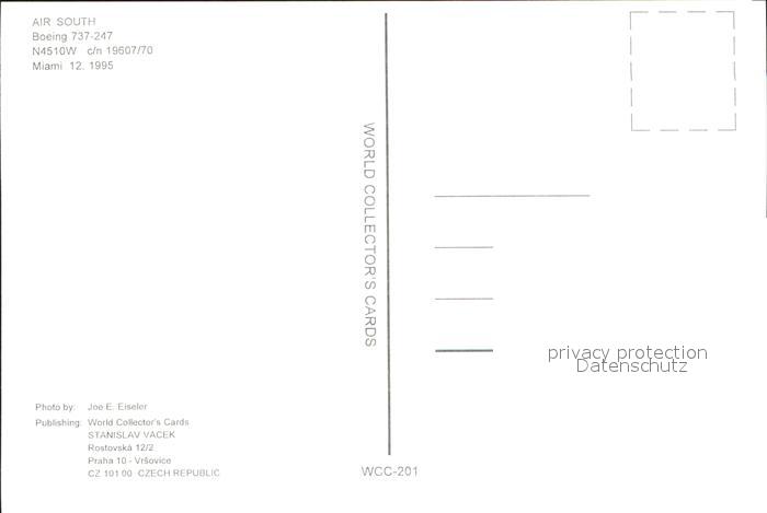 Flugzeuge Zivil Air South Boeing 737-247 N4510W c/n 19607/70 postalisch nicht gelaufen Erhaltung siehe scans
