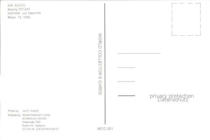 Flugzeuge Zivil Air South Boeing 737-247 N4510W c/n 19607/70 postalisch nicht gelaufen Erhaltung siehe scans