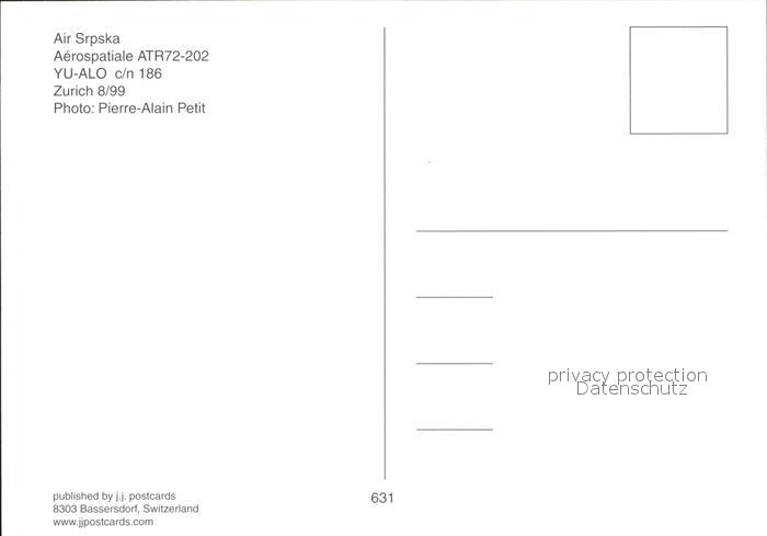 Flugzeuge Zivil Air Srpska Aerospatiale ATR72-202 YU-ALO c/n 186 postalisch nicht gelaufen Erhaltung siehe scans