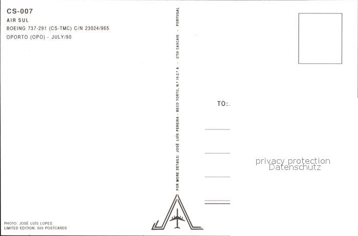 Flugzeuge Zivil Air Sul Boeing 737-291 C/N 23024/965 postalisch nicht gelaufen Erhaltung siehe scans