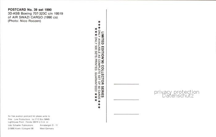 Flugzeuge Zivil Air Swazi Cargo 1990 Boeing 707-323C 3D-ASB c/n 19519 postalisch nicht gelaufen Erhaltung siehe scans