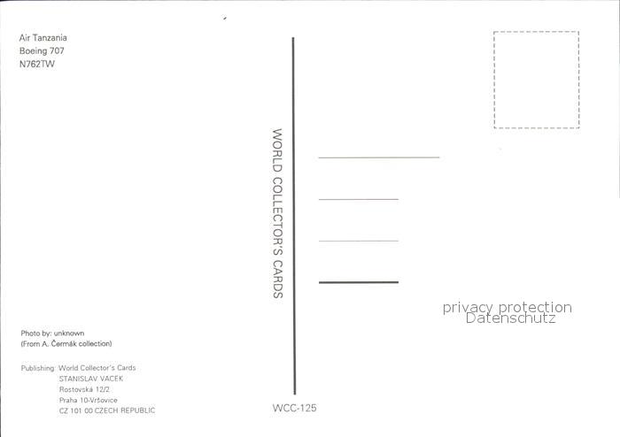Flugzeuge Zivil Air Tanzania Boeing 707 N762TW postalisch nicht gelaufen Erhaltung siehe scans