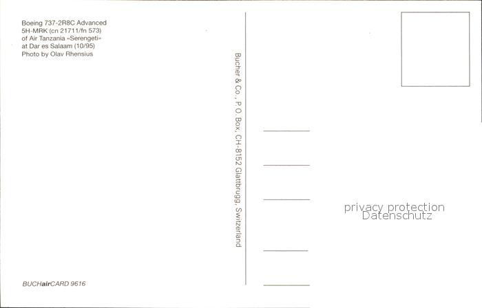 Flugzeuge Zivil Air Tanzania Boeing 737-2R8C Advanced 5H-MRK cn 21711/fn 573 postalisch nicht gelaufen Erhaltung siehe scans