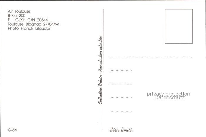 Flugzeuge Zivil Air Toulouse B-737-200 F-GLXH C/N 20544 postalisch nicht gelaufen Erhaltung siehe scans