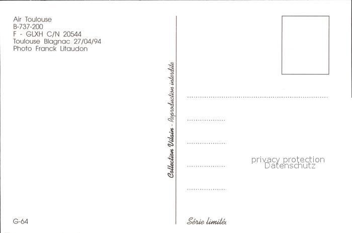 72256578 Flugzeuge Zivil Air Toulouse B-737-200 F-GLXH C/N 20544 KatCode 22120000001300