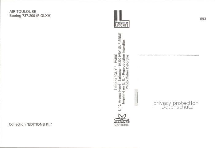 Flugzeuge Zivil Air Toulouse Boeing 737-200 F-GLXH postalisch nicht gelaufen Erhaltung siehe scans