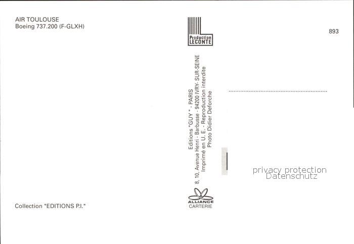 Flugzeuge Zivil Air Toulouse Boeing 737.200 F-GLXH postalisch nicht gelaufen Erhaltung siehe scans