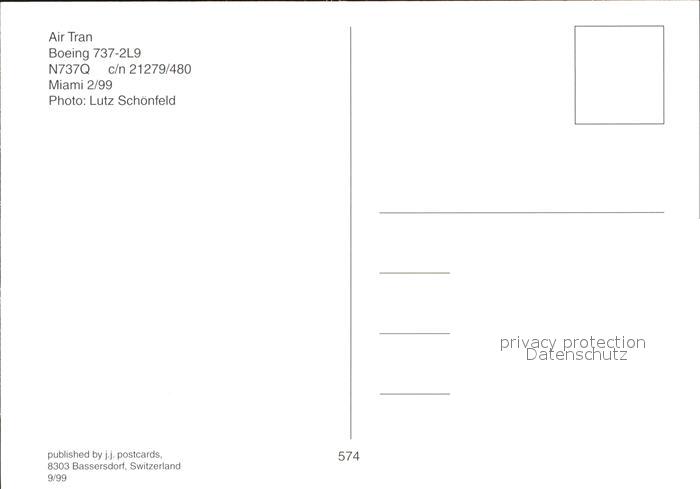 Flugzeuge Zivil Air Tran Boeing 737-2L9 N737Q c/n 21279/480 postalisch nicht gelaufen Erhaltung siehe scans