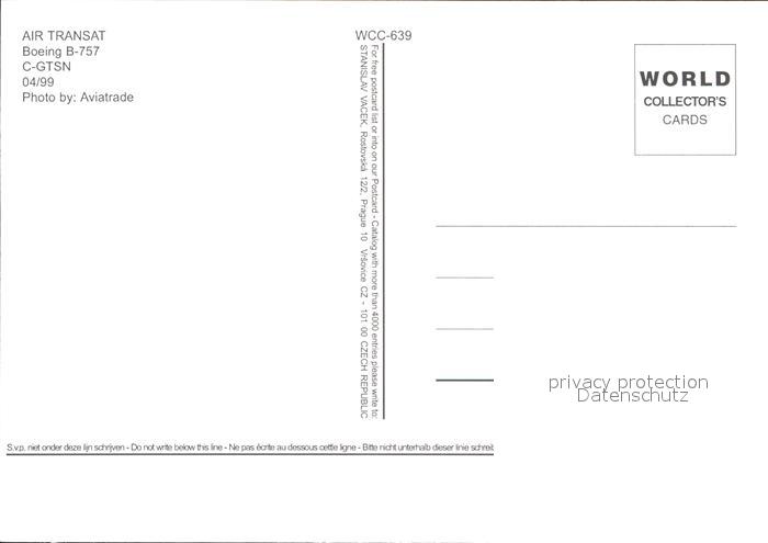 Flugzeuge Zivil Air Transat Boeing 757 C-GTSN postalisch nicht gelaufen Erhaltung siehe scans