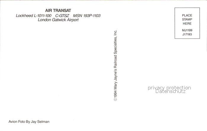 Flugzeuge Zivil Air Transat Lockheed L-1011-100 C-GTSZ MSN 193P-1103 postalisch nicht gelaufen Erhaltung siehe scans