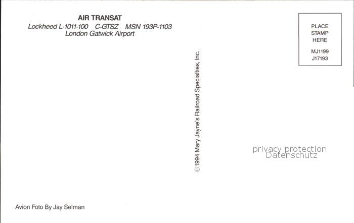 Flugzeuge Zivil Air Transat Lockheed L-1011-100 C-GTSZ MSN 193P-1103 postalisch nicht gelaufen Erhaltung siehe scans