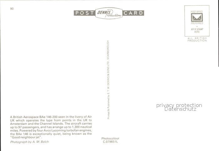 Flugzeuge Zivil Air UK BAe 146-200 postalisch nicht gelaufen Erhaltung siehe scans