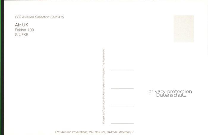 Flugzeuge Zivil Air UK Fokker 100 G-UFKE postalisch nicht gelaufen Erhaltung siehe scans