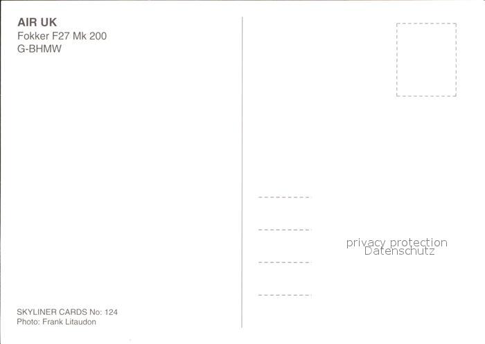 Flugzeuge Zivil Air UK Fokker F27 Mk 200 G-BHMW postalisch nicht gelaufen Erhaltung siehe scans