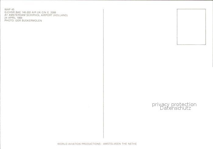 Flugzeuge Zivil Air UK G-CHSR BAE 146-200 c/n E. 2088 postalisch nicht gelaufen Erhaltung siehe scans