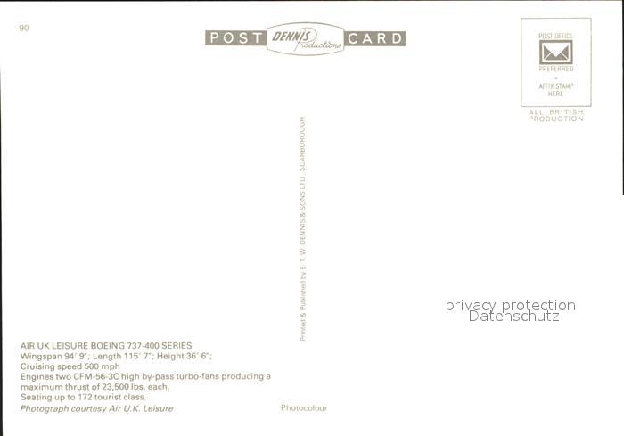 Flugzeuge Zivil Air UK Leisure Boeing 737-400 Series G-UKLA postalisch nicht gelaufen Erhaltung siehe scans