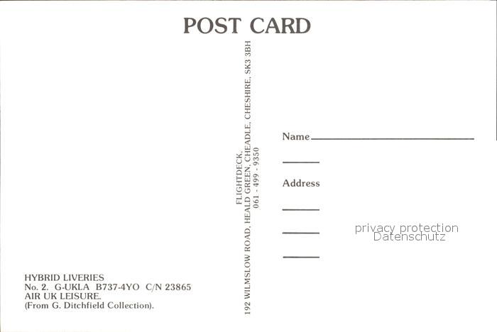 Flugzeuge Zivil Air Uk Leisure G-UKLA B737-4YO C/N 23865 postalisch nicht gelaufen Erhaltung siehe scans