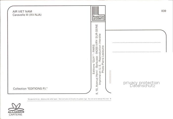Flugzeuge Zivil Air Viet Nam Caravelle III (XV-NJA) postalisch nicht gelaufen Erhaltung siehe scans