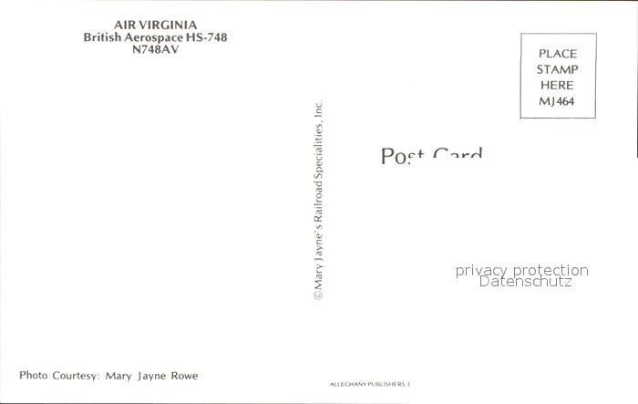 Flugzeuge Zivil Air Virginia British Aerospace HS-748 N748AV postalisch nicht gelaufen Erhaltung siehe scans