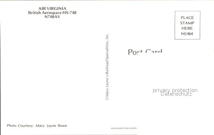 Flugzeuge Zivil Air Virginia British Aerospace HS-748 N748AV postalisch nicht gelaufen Erhaltung siehe scans