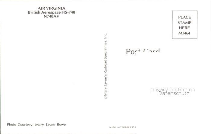 Flugzeuge Zivil Air Virginia British Aerospace HS-748 N748AV postalisch nicht gelaufen Erhaltung siehe scans