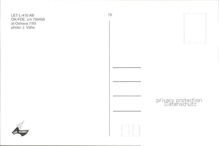 Flugzeuge Zivil Air Vitkovice LET L-410 AB OK-FDE c/n 750409 postalisch nicht gelaufen Erhaltung siehe scans