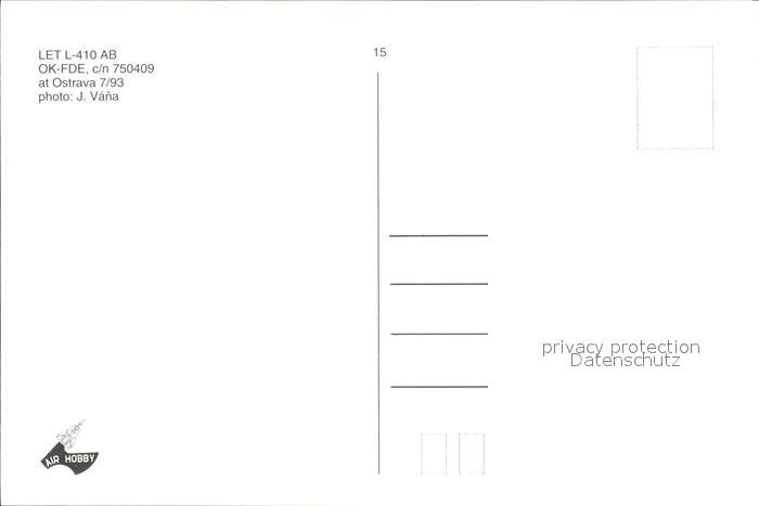Flugzeuge Zivil Air Vitkovice LET L-410 AB OK-FDE c/n 750409 postalisch nicht gelaufen Erhaltung siehe scans