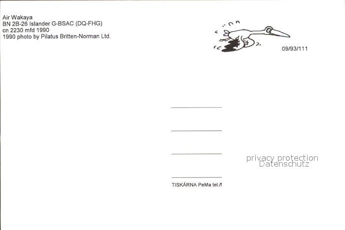 Flugzeuge Zivil Air Wakaya BN 2B-26 Islander G-BSAC DQ-FHG cn 2230 postalisch nicht gelaufen Erhaltung siehe scans