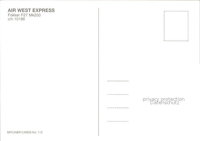 Flugzeuge Zivil Air West Express Fokker F27 Mk200 c/n 10186 postalisch nicht gelaufen Erhaltung siehe scans