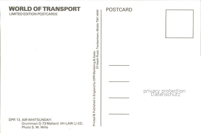 Flugzeuge Zivil Air Whitsunday Grumman G-73 Mallard VH-LAW J-22 postalisch nicht gelaufen Erhaltung siehe scans
