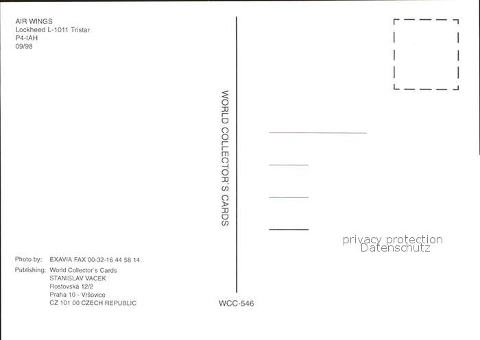 Flugzeuge Zivil Air Wings Lockheed L-1011 Tristar P4-IAH postalisch nicht gelaufen Erhaltung siehe scans