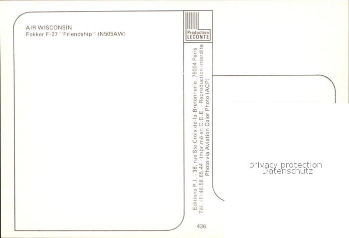 Flugzeuge Zivil Air Wisconsin Fokker F-27 N505AW Friendship postalisch nicht gelaufen