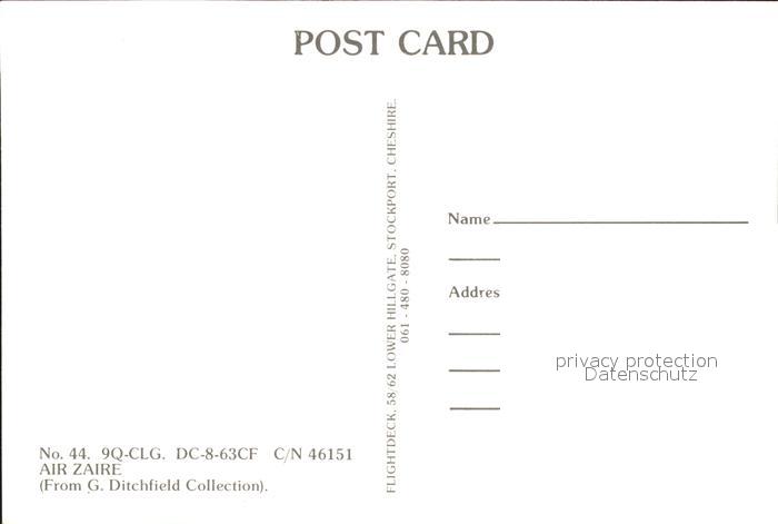 Flugzeuge Zivil Air Zaire Dc-8-63CF 9Q-CLG c/n 46151 postalisch nicht gelaufen Erhaltung siehe scans