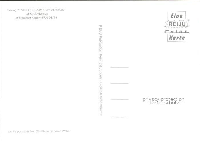 Flugzeuge Zivil Air Zimbabwe Boeing 767-2NO Z-WPE postalisch nicht gelaufen Erhaltung siehe scans
