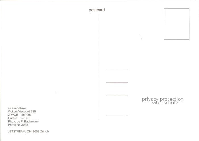 Flugzeuge Zivil Air Zimbabwe Vickers Viscount 839 Z-WGB cn 436 postalisch nicht gelaufen Erhaltung siehe scans