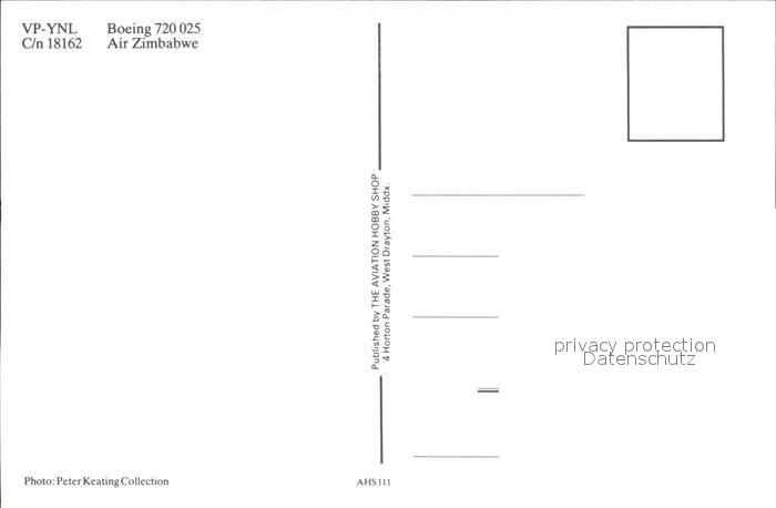 Flugzeuge zivil Air Zimbabwe YP-YNL Boeing 720 025 postalisch nicht gelaufen Erhaltung siehe scans