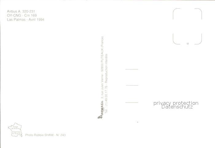 Flugzeuge Zivil Airbus A. 320-231 OY-CNG C/n 169 postalisch nicht gelaufen Erhaltung siehe scans