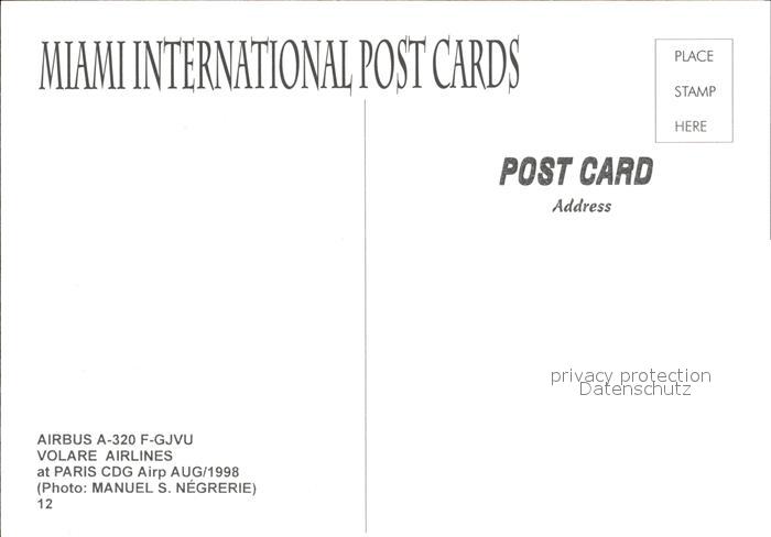 Flugzeuge Zivil Airbus A-320 F-GJVU Volare Airlines postalisch nicht gelaufen Erhaltung siehe scans