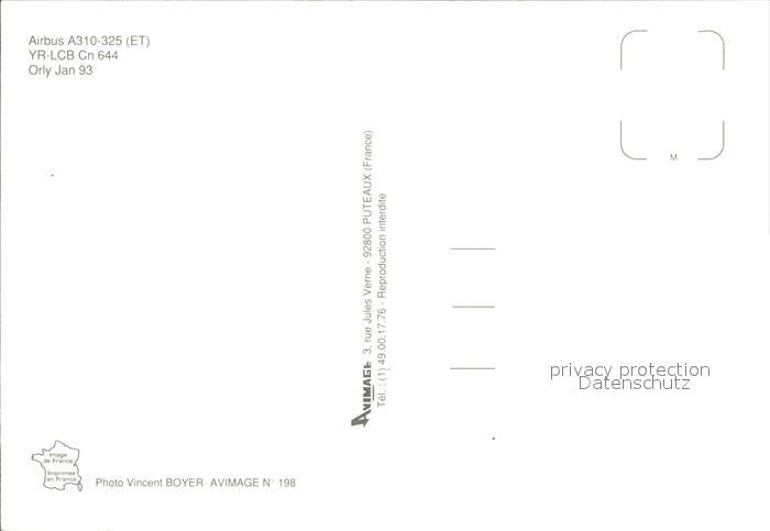 Flugzeuge Zivil Airbus A310-325 ET YR-LCB TAROM Orly postalisch nicht gelaufen Erhaltung siehe scans