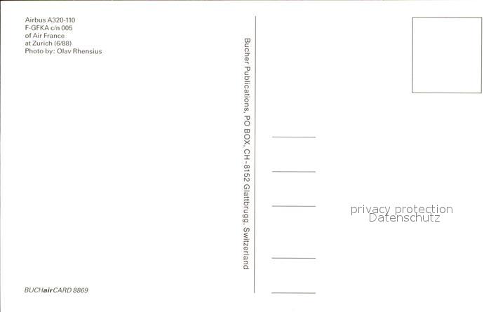 Flugzeuge Zivil Airbus A320-110 F-GFKA c/n 005 Air France postalisch nicht gelaufen