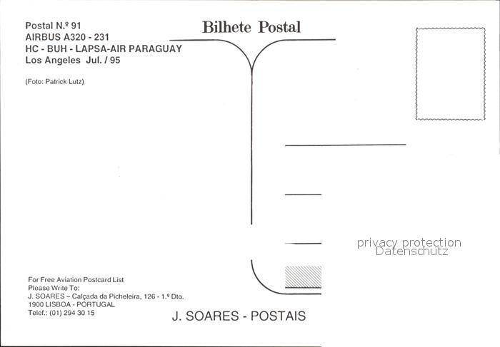 Flugzeuge Zivil Airbus A320-231 Lapsa-AIR Paraguay Los Angeles postalisch nicht gelaufen Erhaltung siehe scans