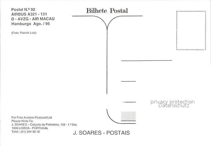 Flugzeuge Zivil Airbus A321-131 Air Macau Hamburg postalisch nicht gelaufen Erhaltung siehe scans
