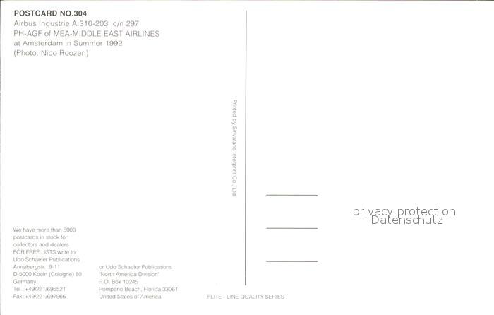 Flugzeuge Zivil Airbus Industrie A.310-203 c/n 297 PH-AGF Mea-Middle East Airlines postalisch nicht gelaufen Erhaltung siehe scans
