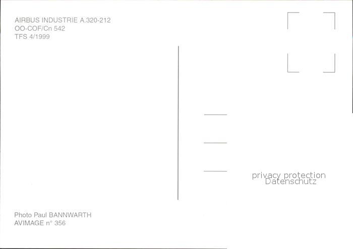 Flugzeuge Zivil Airbus Industrie A.320-212 OO-COF/Cn 542 postalisch nicht gelaufen Erhaltung siehe scans