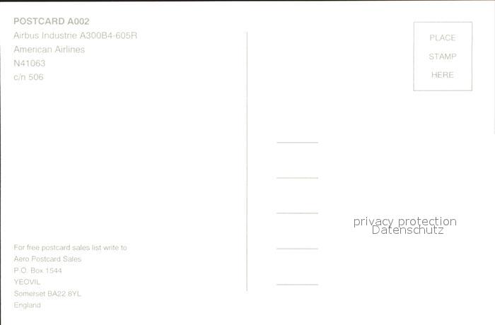 Flugzeuge Zivil Airbus Industrie A300B4-605R American Airlines N41063 c/n 506 postalisch nicht gelaufen