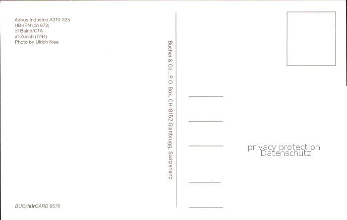 Flugzeuge Zivil Airbus Industrie A310-325 HB-IPN cn 672 Balair CTA postalisch nicht gelaufen Erhaltung siehe scans