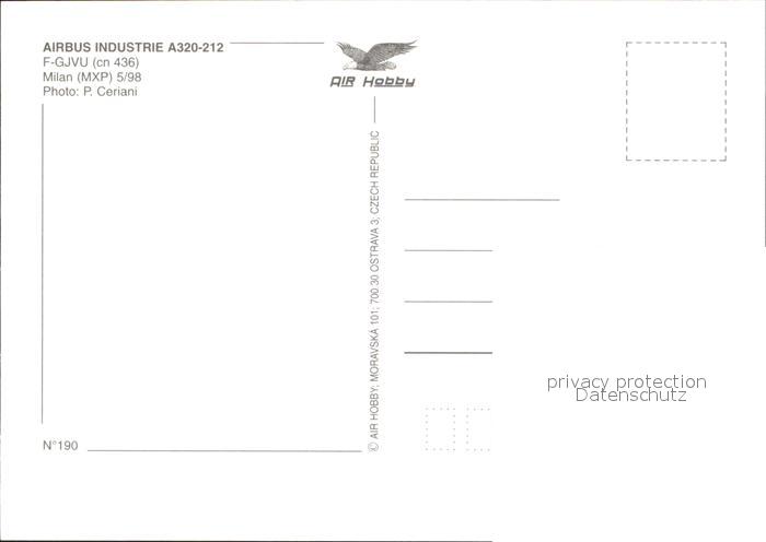Flugzeuge Zivil Airbus Industrie A320-212 F-GJVU cn 436 postalisch nicht gelaufen Erhaltung siehe scans