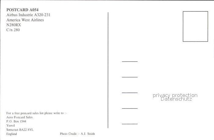 Flugzeuge Zivil Airbus Industrie A320-231 America West Airlines postalisch nicht gelaufen Erhaltung siehe scans