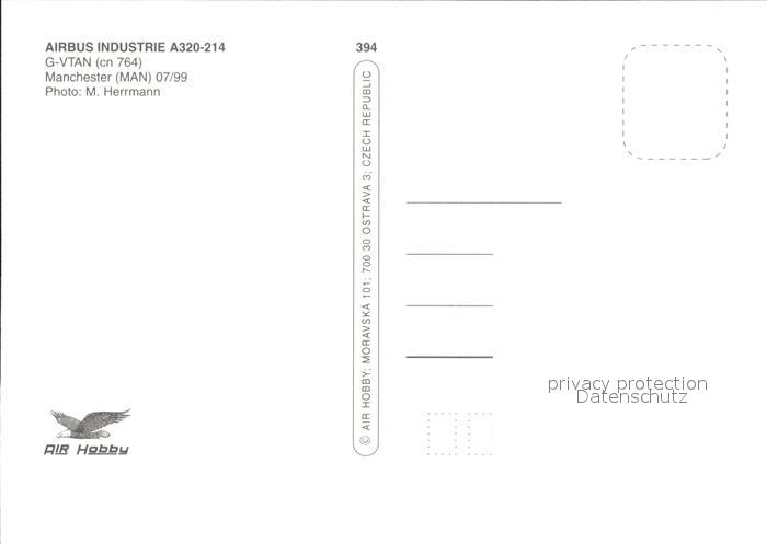 Flugzeuge zivil Airbus Industries A320-214 G-VTAN (cn 764) Manchester postalisch nicht gelaufen Erhaltung siehe scans
