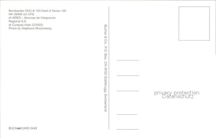 Flugzeuge Zivil Aires Bombardier DHC-8-103 Dash 8 Series 100 HK-3946X cn 076 postalisch nicht gelaufen Erhaltung siehe scans